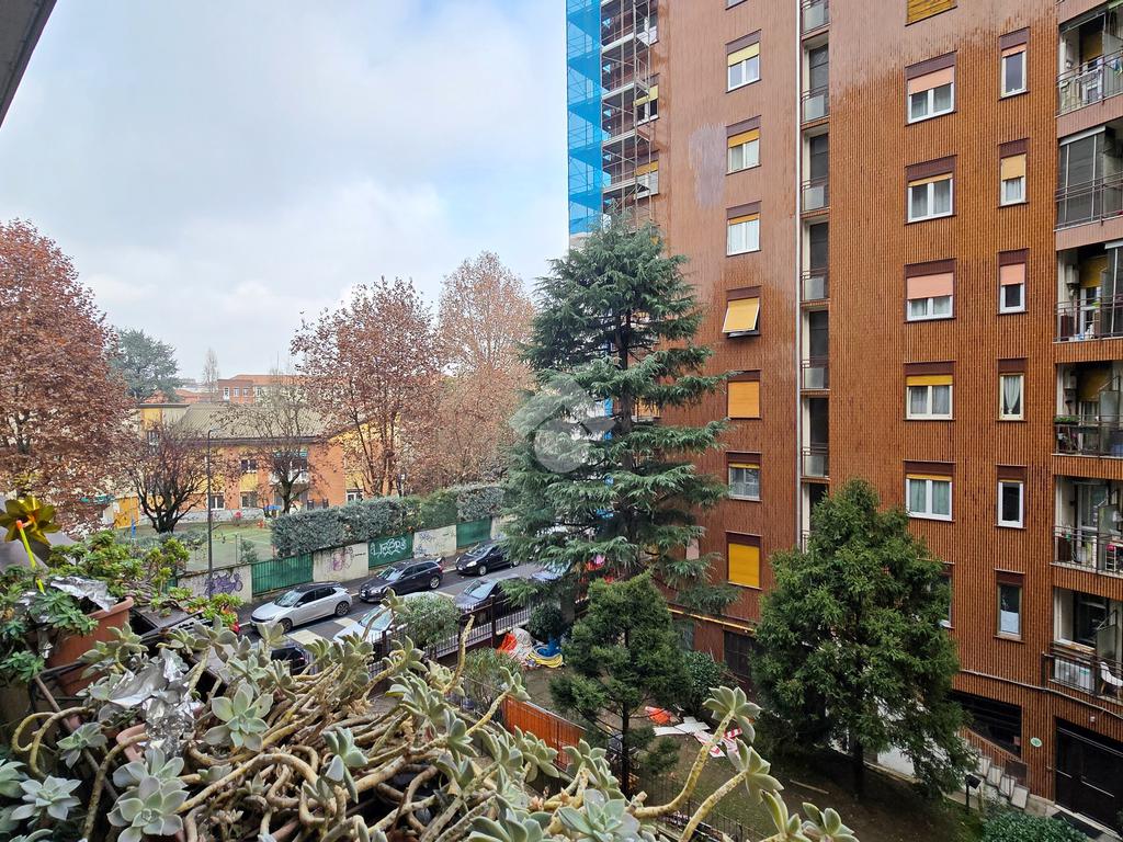 Via Crimea, a soli 250 metri dalla fermata della MM Primaticcio e 500 metri dalla fermata della MM Bande nere, zona servita da scuole, supermercati, spazi verdi, in stabile medio signorile con servizio di portineria full time, proponiamo: appartamento al piano secondo con ascensore composto da un ingresso, un soggiorno con balcone, una cucina abitabile con balcone, due camere da letto, un bagno finestrato con vasca, un ripostiglio ed una cantina di pertinenza. L'immobile si presenta in buone condizioni, infissi in doppio vetro, la doppia esposizione lo rende luminoso. Libero subito